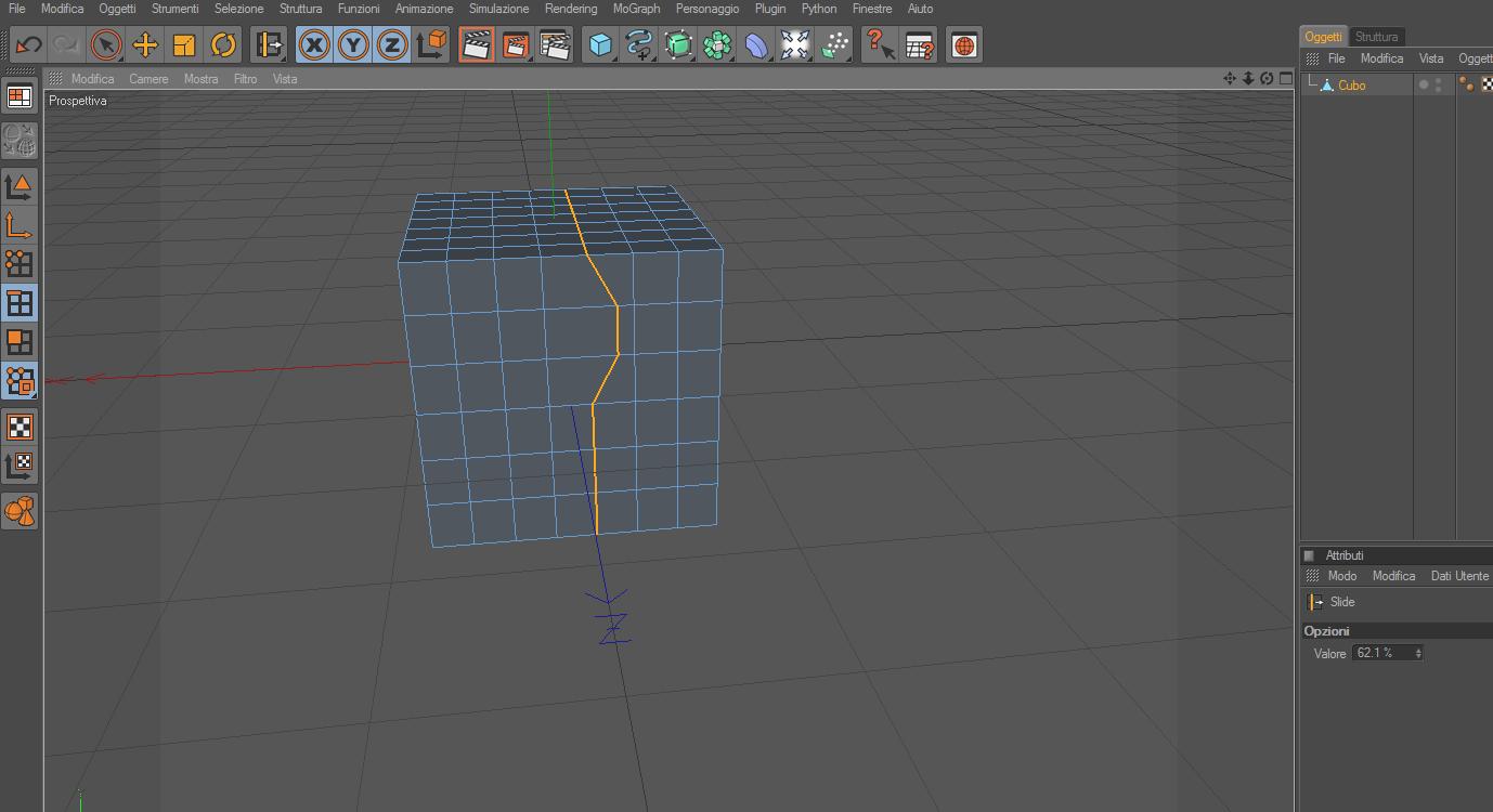 come vedete nell immagine ho selezionato con loop un lato del cubo ,adesso lo voglio spostare più a destra ma quando prendo il comando slide per spostarlo mi sposta un solo segmento alla volta e non tutta la selezione che ho fatto.