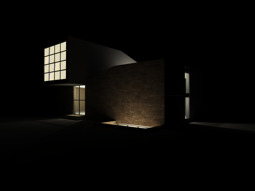 - una luce area interna all'edificio perpendicolare al serramento dell'interrato (intensità 140%, ombre area)