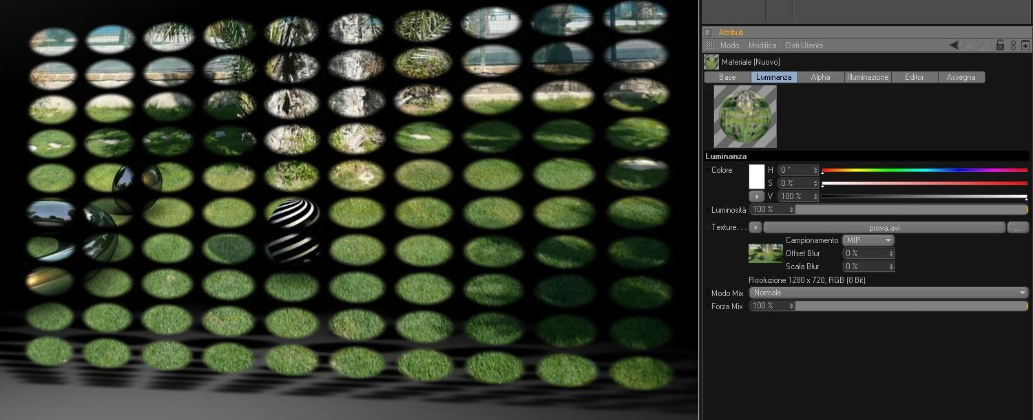 Il problema è che il mio filmatino ha una proporzione 16/9 ma quando lo inserisco in un canale del materiale mi diventa quadrato (e questo succede anche con tutte le immagini e texture quando creo un materiale qualunque) e di conseguenza tutte le proporzioni di luminanza a pallini e alpha a righe sono proporzionate all'anteprima quadrata...