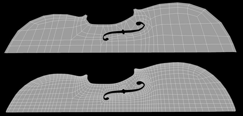 Per ora mi sono concentrato sul foro a f, vi sottopongo questa soluzione di tagli, mi piacerebbe sapere in quale altra maniera si potrebbe affrontare.