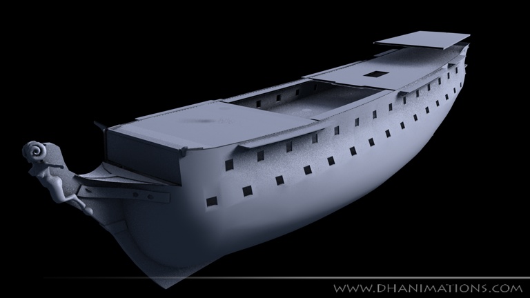 Back on board, i added some decks and the bits on the side that the masts are tied onto. And a voluptuous bow spirit.