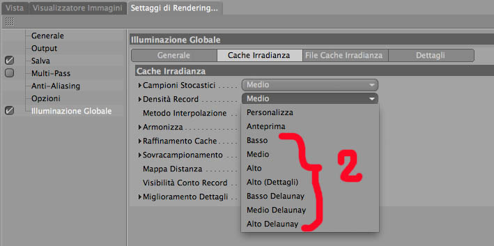 Ovviamente poi vanno impostati tutti i parametri della GI conformemente alla qualità di render che si desidera.