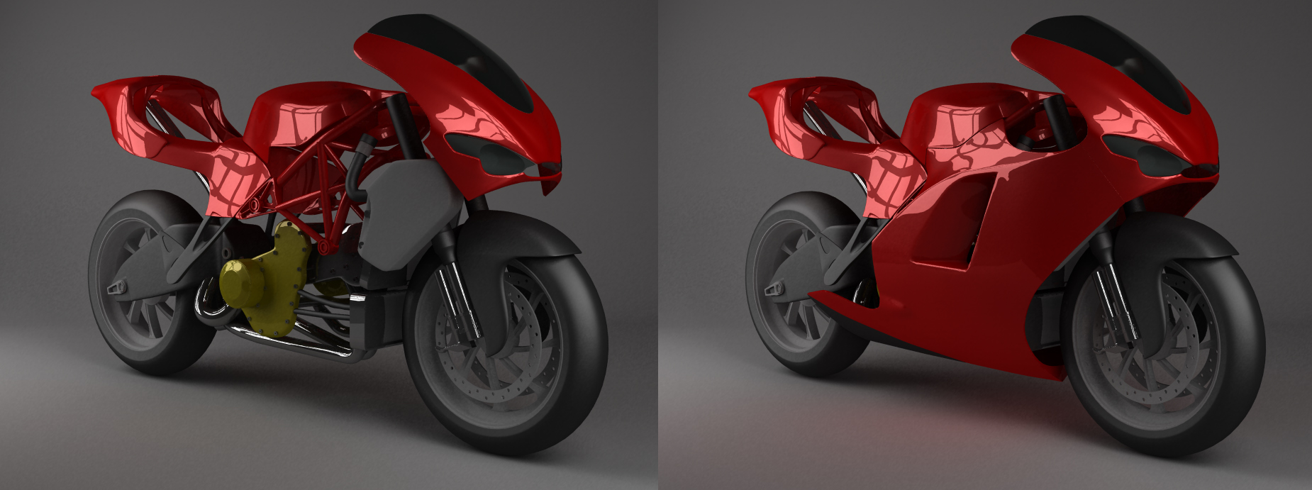 intanto ho iniziato la parte "interna" della moto... sono sicuro che il render a moto conclusa non partirà!!