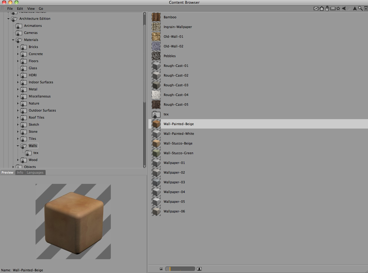 per quanto riguarda l'intonaco mi son spiegato male, è presente nei materiali dell' Architecture edition...ti metto comunque uno screen shot...