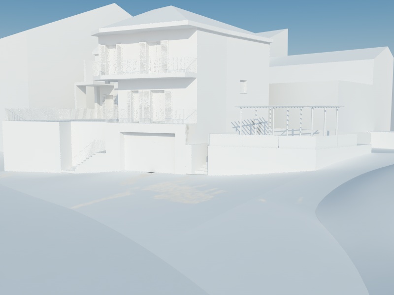 Poi, ma questa è sempre una mia opinione, sposterei il sole in modo che la facciata principale sia un pò più ombreggiata ..... comunque vedì tu, solo perchè così come ora sembra che non ci siano ombre... :D