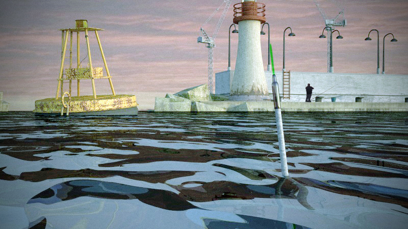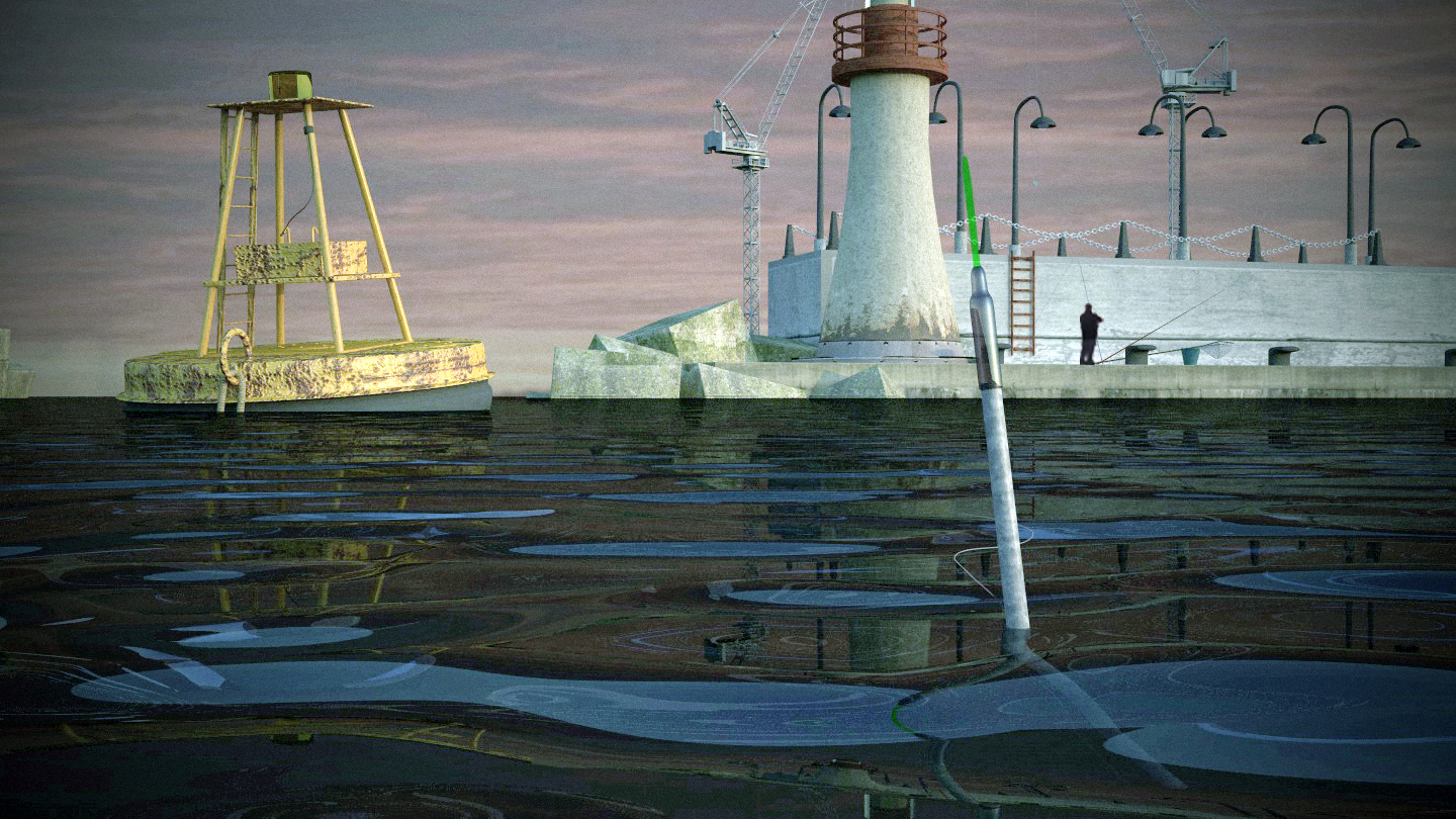 In generale non è male, ma credo che ci vogliano almeno un altro paio di cose per renderla un pochino più realistica: un pò di profondità di campo (altrimenti la boa sembra grossa come il faro) e il displacement all'acqua (perché si vede che la boa e tutta la banchina affondano in un piano perfettamente piatto)