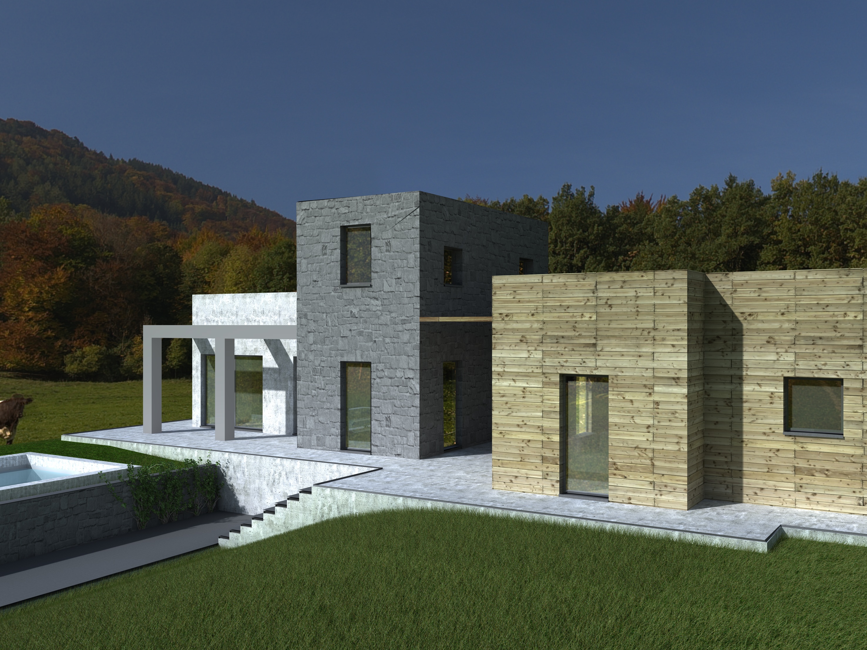Anche la pavimentazione davanti al volume in legno fa un effetto strano, non capisco come mai!