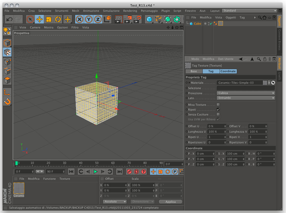 Come puoi vedere, le coordinate che mi hai indicato segnano 0,0,0, perché la texture è centrata rispetto all'oggetto: