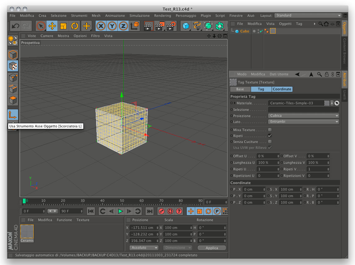 Nella versione 12 per avere quella finestra bastava selezionare lo strumento "Asse Texture", nella 13 devo anche selezionare "Asse Oggetto". Mi adeguerò, ma mi sembra una cosa incomprensibile perché è concettualmente l'opposto.