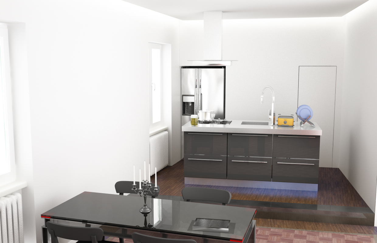 Un altro picco UP, per l'angolo cottura ovviamente anche questo è solo una bozza come dimostra l'assenza del battiscopa e il parquet con un angolo sbagliato!
