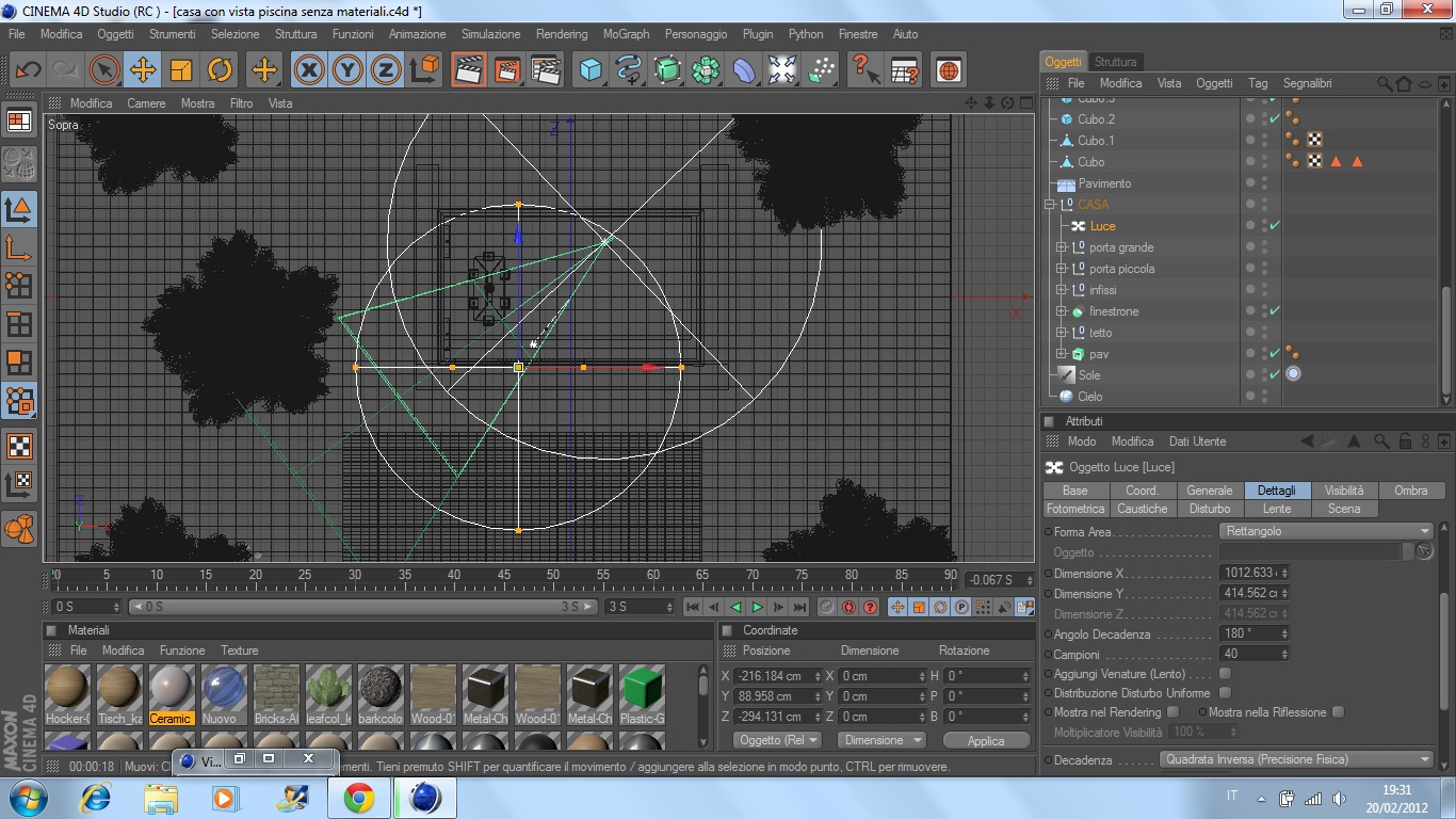 Ecco fatto , dunque premetto che noto anch'io che c'è un problema sulla luce area posta dietro la porta finestra in quandro ha creato 3 pallini luminosi , forse dipende dalla decadenza scelta ovvero quella con precisione fisica.. avevo provato la lineare ma senza aumentare i settaggi più del 100% era molto buia la scena .... comunque ho fatto screen anche della vista sopra per mostrare quanto ho allargato la decadenza delle 2 luci area quella dalla finestra scorrevole e quella in prossimità della camera. Attendo consigli... ma premetto che fino a domani mattina non credo di riuscire a postare... Grazie ancora.