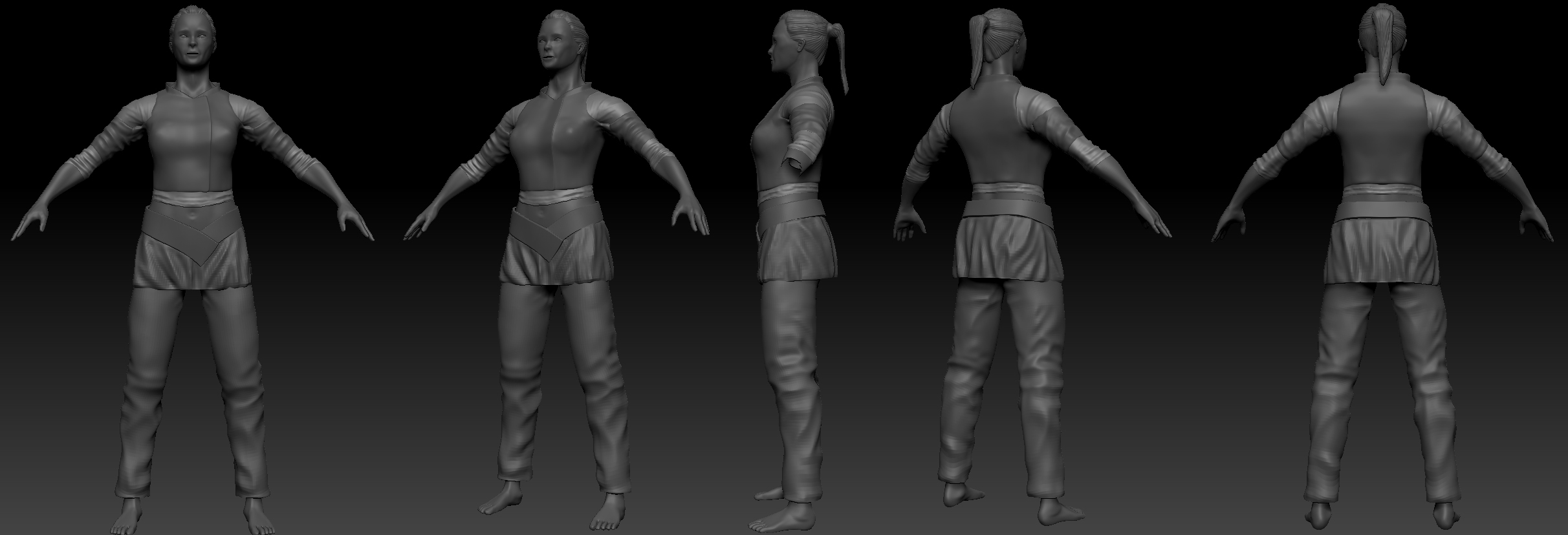 errori qua e là di overlapping(cintura) e texture sbavate(scarpe), ma niente che non si sistemi spostando 3,4 vertici e con una passata di photoshop.
