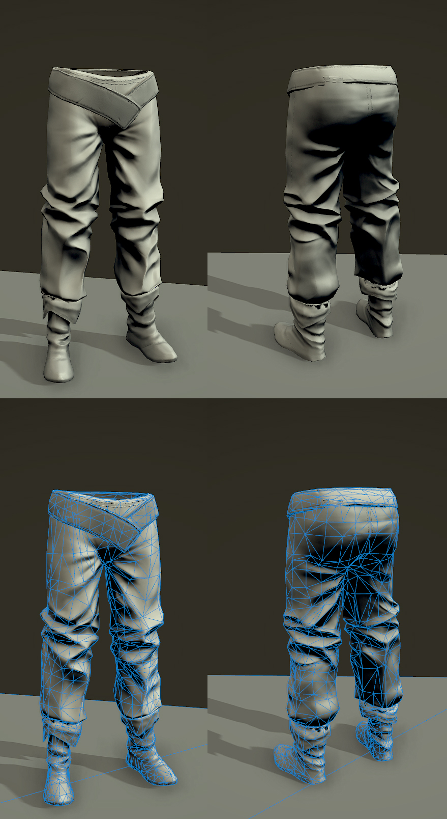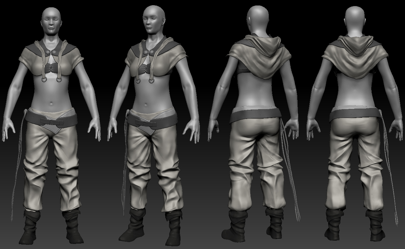 C'è un uso esagerato del Pinch brush rende tutto poco morbido e troppo spigoloso quando invece i pantaloni dovrebbero dare l'idea di un tessuto spesso ma morbido a quanto immagino...