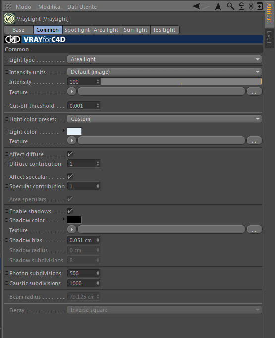 hurricane ha scritto:Le luci area hanno le ombre attive? Hanno l'asse Z (Blu) rivolto verso l'interno? Le hai messe al di qua dei vetri meglio se a filo interno muro? E soprattutto....... stai lavorando in cm? Ossia se ad esempio il divano è lungo 2.30 metri, nella scena misura 230 cm?