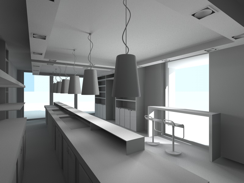 ho fatto il corso completo di C4D a fine 2007 presso zuccherodicanna, o C4D zone che dir si voglia, con la versione 10.5, ottimo corso ma niente insegna più della pratica. Per illuminare gli interni uso la tecnica descritta nel (mi pare settimo) libro fatto prorio da C4D zone sull'illuminazione appunto con IG e SKY a pag. 273. In questo progetto ho aggiunto anche delle luci area in prossimità delle finestre.