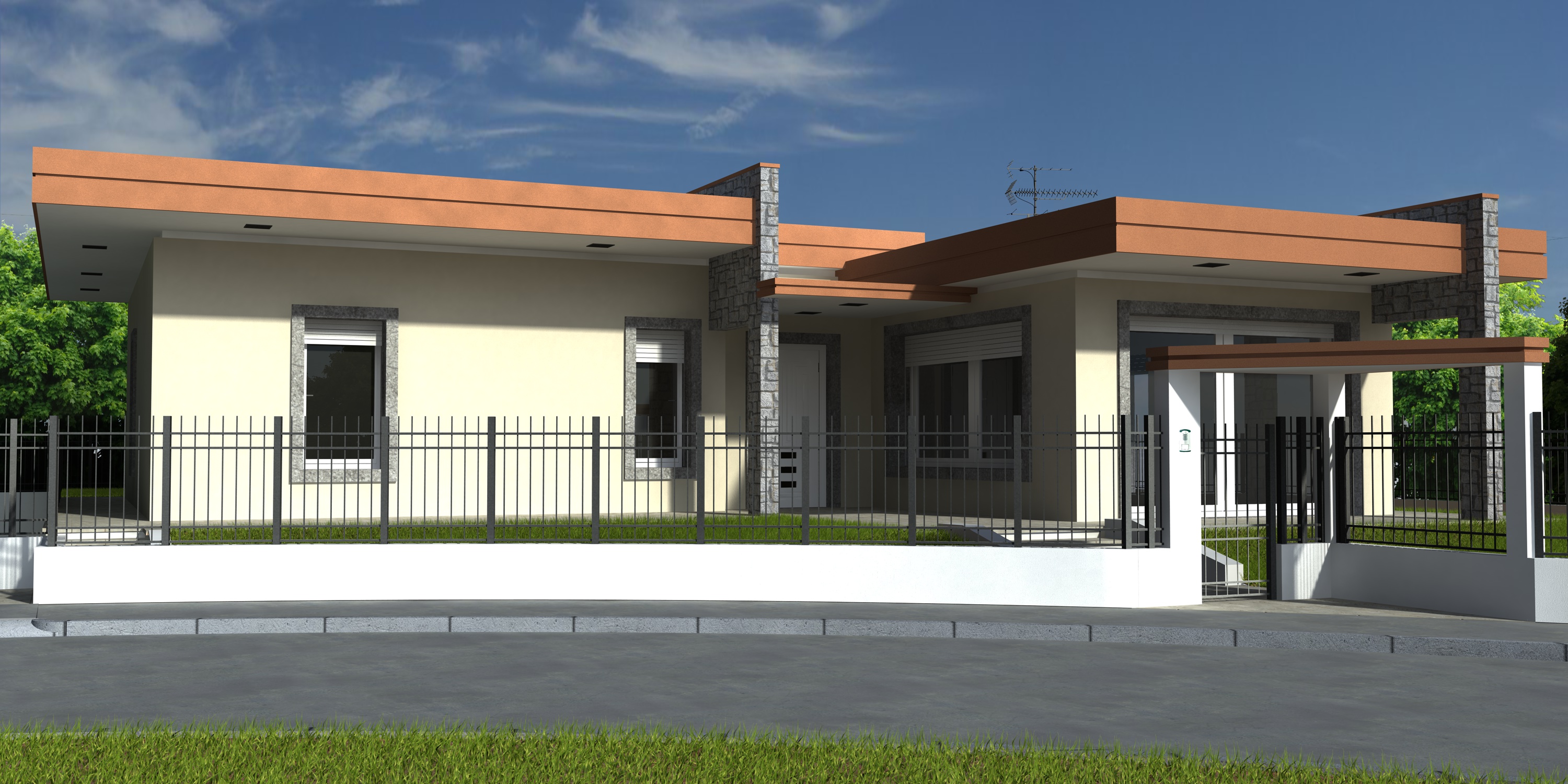 Il fatto è che il tetto piano (che poi in realtà non è piano, ma ha una leggera pendenza, la quale viene poi coperta da una veletta) è stata una richiesta del committente "prova a mettere un tetto piano"....ed dopo aver visto la prima bozza era molto entusiasta....e l'importante è che piaccia a lui, anche se a dire il vero piace molto anche a me....de gustibus.... :)
