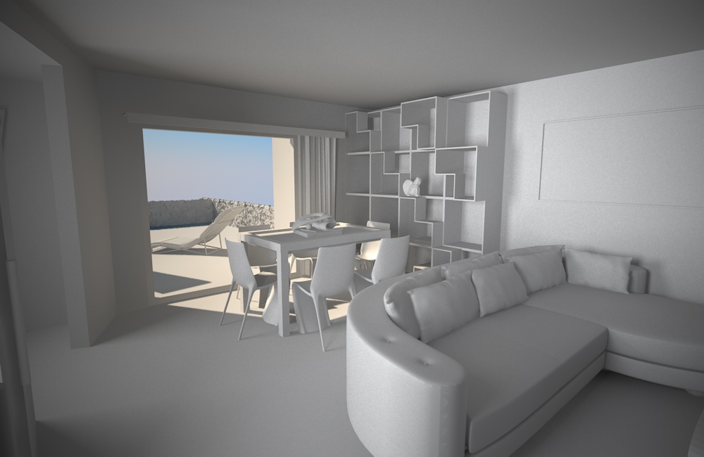 Per lo sfondo dietro la siepe ci sto lavorando,, nel frattempo ho dovuto cambiare un po la disposizione interna, vengo quindi ancora a chiedere consigli su luci e materiali :-((