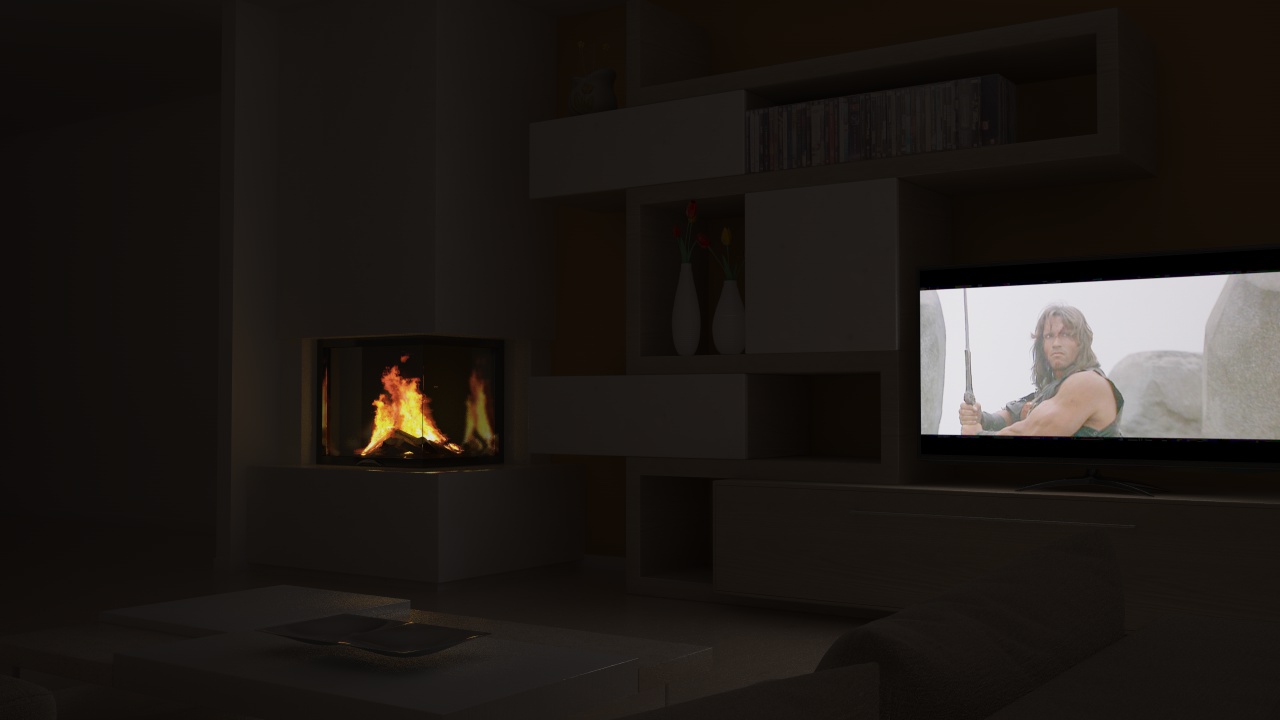 non dovrebbe illuminare solo le parti prossime alla tv e al camino acceso e lasciare nero le parti più lontane? Invece sembra che comunque dia illuminazione diffusa un po dappertutto.