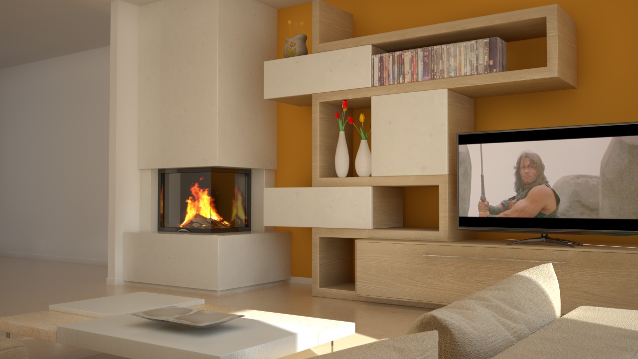 Bello il tuo render dell'attico, mi piace l'effetto del fuoco nell'immagine notturna, anche io vorrei una resa del genere.