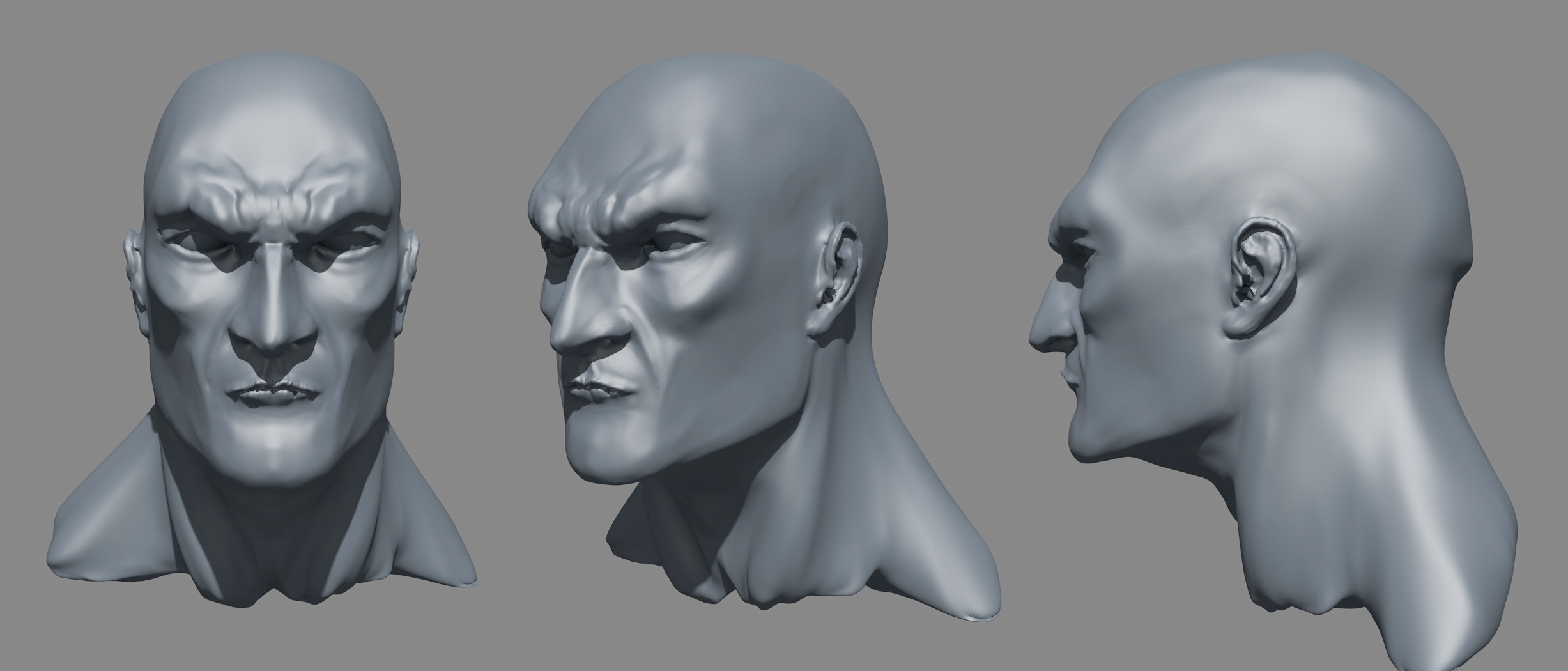 allego un esempio di preparazione di un modello prima della fase di sculpting, in cui si evidenzia come questo debba essere EQUAMENTE suddiviso, con poligoni quanto più possibile di forma quadrata! Questo è l'unico modo per non avere distorsioni o dettagli 'mosci'!