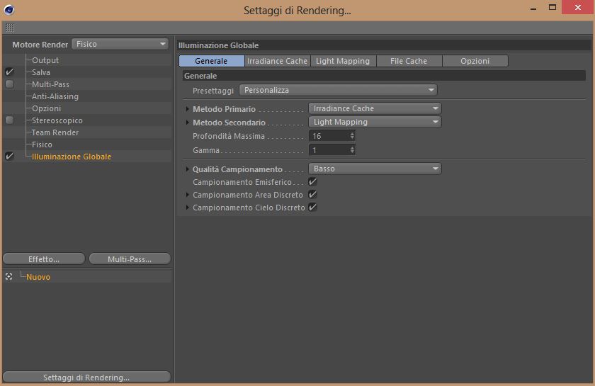 - metodo primario: irradiance cache (non quella che si chiama legacy)