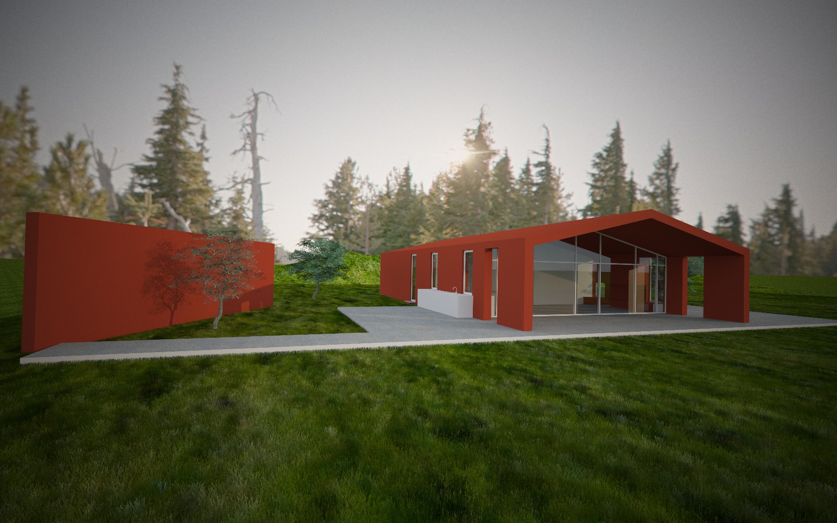 guardando la tua ultima inquadratura: il modello non è completo...il vialetto finisce a ridosso del muro, che è immerso in un campo...poi più niente: a che serve quel muro quindi?