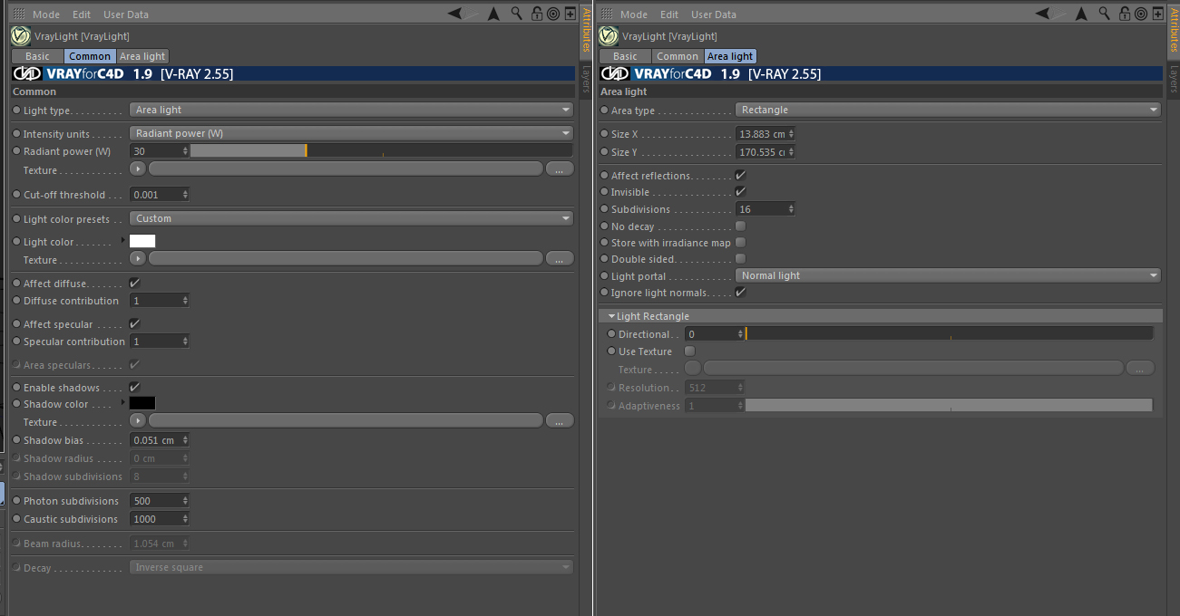 Quindi il problmea è la luce area che ho messo, eppure le impostazioni mi sembrano corrette