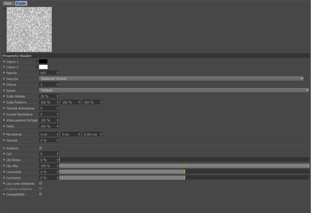 Per ottenere questo tipo d'effetto ho semplicemente applicato un materiale Displacement al piano con le impostazioni che vedete nelle immagini, scelto il Displace Voronoi come disturbo e aggiunto in seguito un semplice materiale vetro.