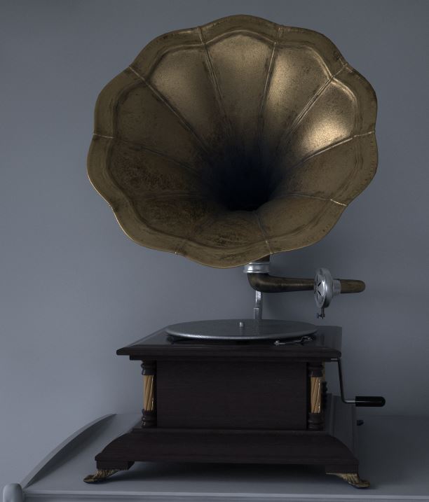 Di seguito, comunque, metto i due render ravvicinati del grammofono e della radio che ho fatto e che mi son serviti per controllare geometrie, materiali e riflessioni varie, step che faccio molto spesso e che magari agli utenti più bravi e voloci, o per chi deve consegnare lavori in fretta, può risultare abbastanza superfluo. Li metto anche perchè magari potete vedere come ho ragionato sui vari materiali e magari può anche essere che qualcuno noti qualche incongruenza o discrepanza che mi è sfuggita o di cui non ci ho proprio fatto caso.