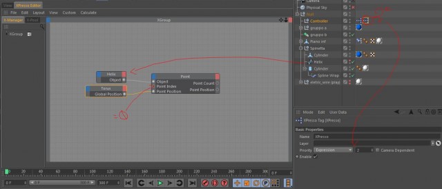 abe3d ha scritto: .....un secondo tag xpresso in cui ho messo solo il controller del punto 0 della spline helix e a cui ho dato una priorità expression 2