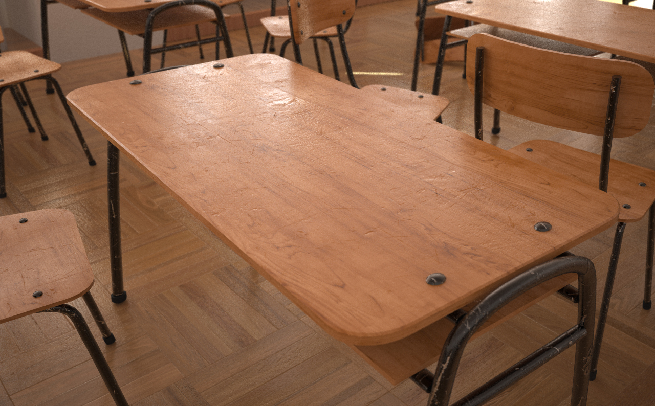Seguendo il consiglio di cesgimami sul colore delle zampe del tavolo e delle sedie, ho aggiunto l'usura anche su quest'ultime.