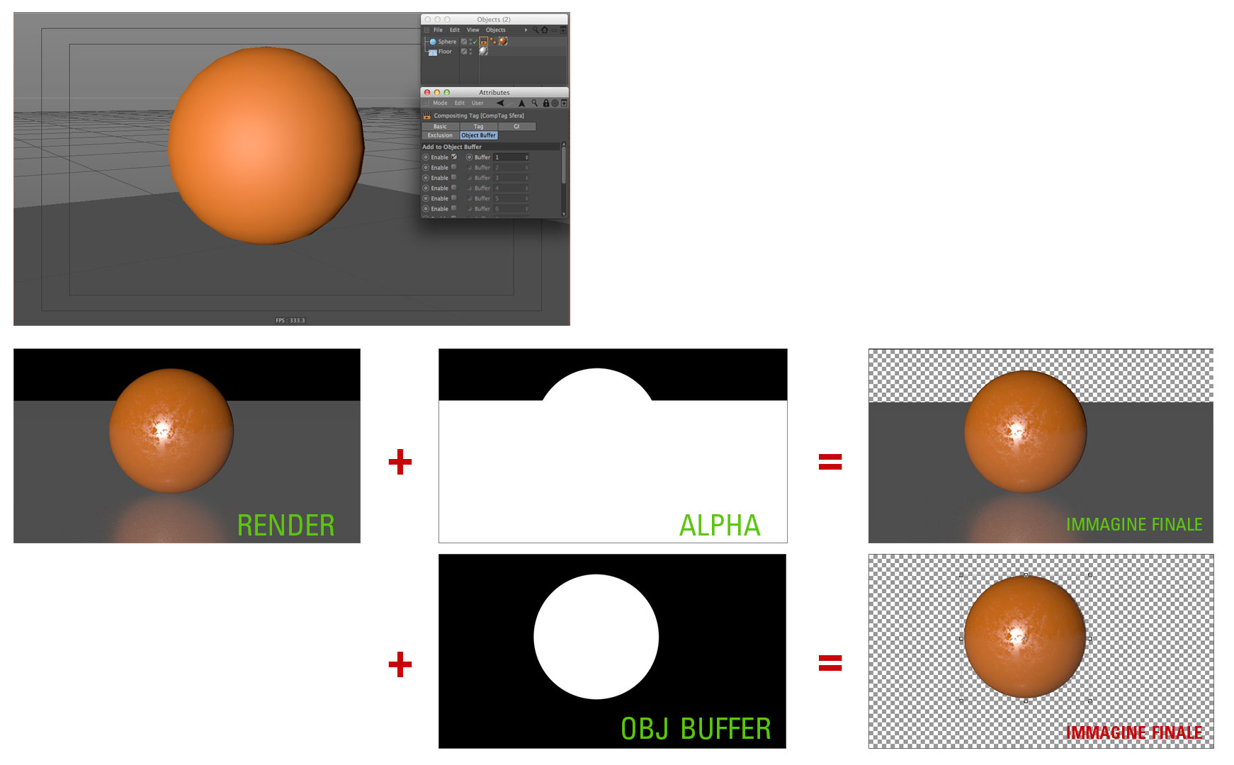 Non ho detto che non puoi, ho detto che se usi l'alpha (del pannello Salva) ed il pavimento copre l'intera inquadratura, l'alpha ti viene tutto pieno..proprio perchè non ci sono "buchi" nell'immagine. Se provi a disattivare il pavimento o a mettergli un compositing tag togliendo la spunta a Visible to camera vedrai che ti viene l'alpha corretto [per rispondere alla domanda quindi: sì, a patto che tu nasconda in qualche modo il pavimento]. Dato che non sempre è possibile disattivare o nascondere alla camera un oggetto, l'altra strada da percorrere è l'object buffer, che però ti esce come immagine (o livello) separato, e quindi devi fare qualche passaggio in più nel software di compositing per avere l'alpha.simon77fi ha scritto:gLa domanda è: posso avere il manichino automaticamente scontornato con il buffer oggetto (o canale alpha) e in gimp o qualsiasi altro sw mettrgli sfondo diverso? a sentire visual no e devo scontornare mentre a sentire vampiro parrebbe di si..