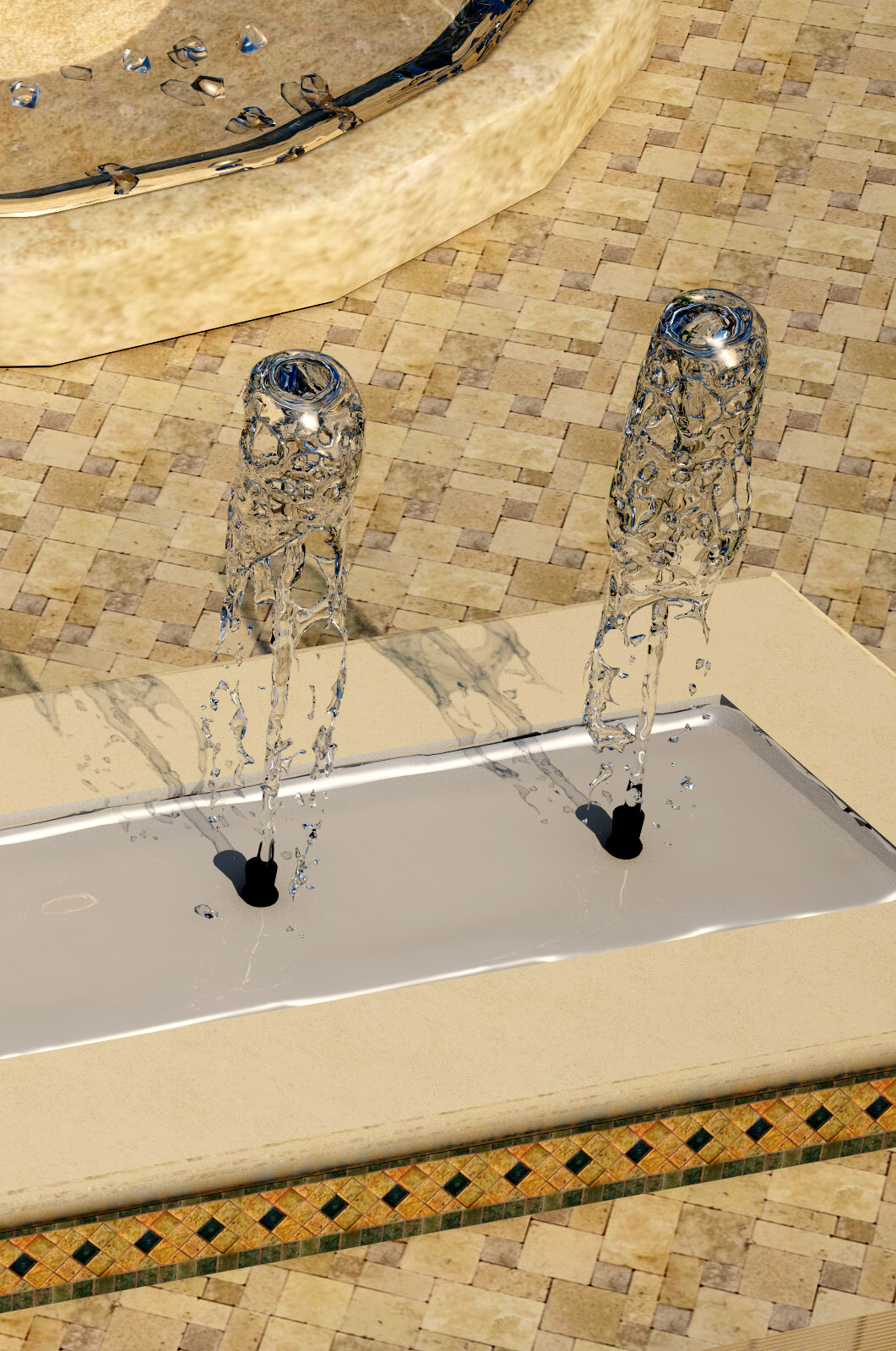 Vorrei sapere come realizzare il getto d'acqua come in allegato!!! l'acqua "a riposo" è trasparente, ma parlando di forti getti d'acqua tende a diventare bianca, come se ci fosse schiuma!!!
