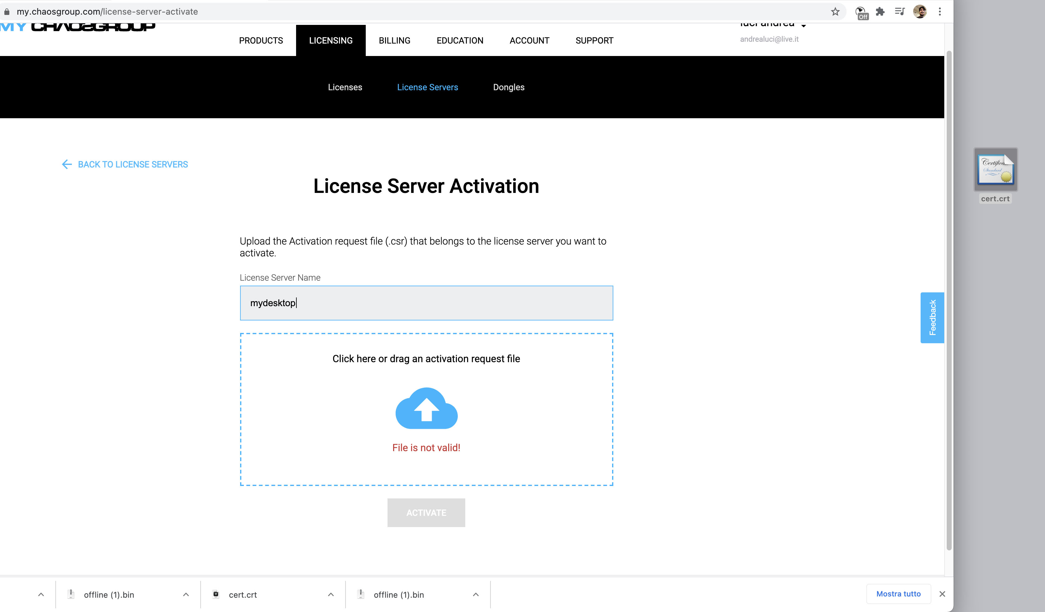 mi sa che è proprio questo il problema... nel mio account di chaos group risulta attivata la licenza... ma quando sono offline non funziona