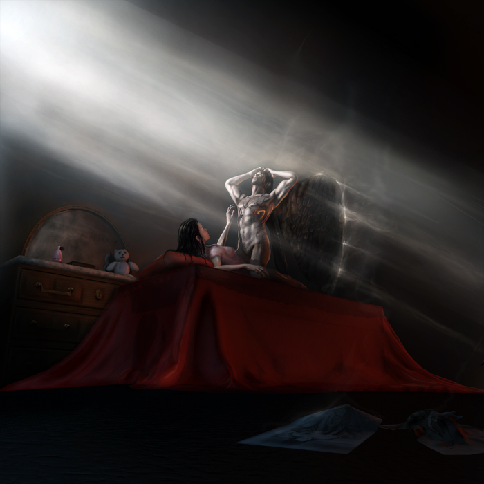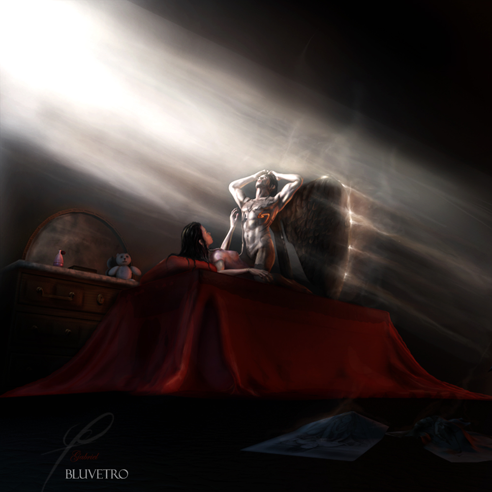 senti una cosa ma `un riflesso quello rosso sul corpo dell'angelo??? cmq io quoto luca modificare l'angelo e lo scalerei un pochino sembra piu pìcccolo della donna io farei piu un omone almeno fai contenta anche lei..