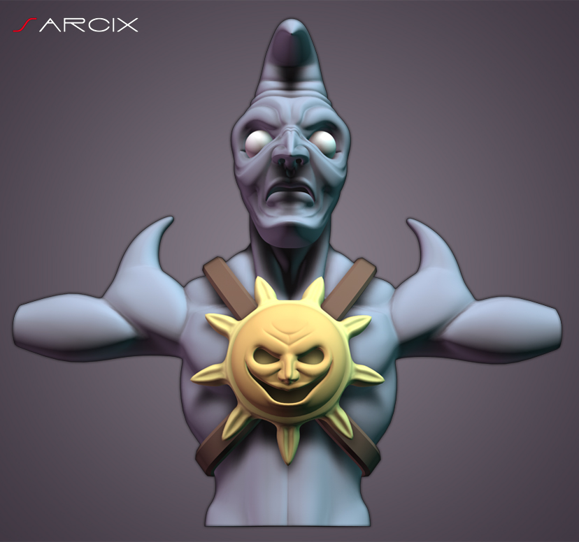 I particolari della cinghia vanno fatte , ho solo abbozzato la forma base, penso che metterò viti o parti metalliche ecc... La figura del sole mi piaceva per contrasto alla testa del personaggio, ma è tutto da vedere...
