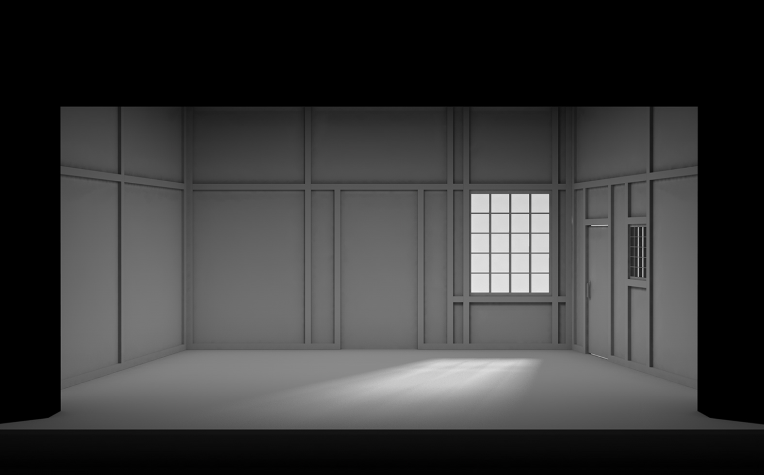 Ho buttato giù la struttura della scena e ho inserito, solo per ora, una luce area al 70% che cade a pioggia sul palcoscenico e uno spot al 150% con ombra area al 100% il tutto condito da una illuminazione globale con parametri standard. Chiaramente l'illuminazione non sarà questa, ma la prova mi serve per cominciare a capire la scena.