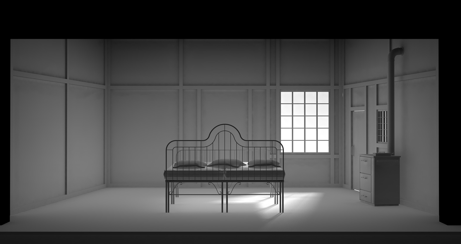 Lo spettacolo si svolge in una casetta di legno decisamente squallida. I mobili e il resto non hanno un epoca stabilita, ma secondo me devono dare l'idea di essere stati costruiti o adattati da chi ci vive dentro.
