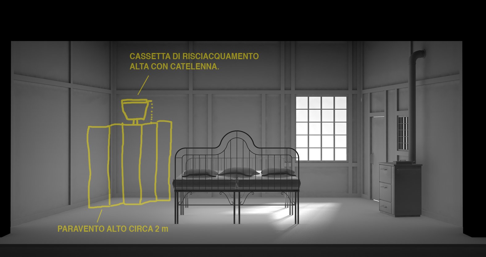adesso tocca al paravento e alla cassetta del bagno. Come indicato dal bozzetto allegato.