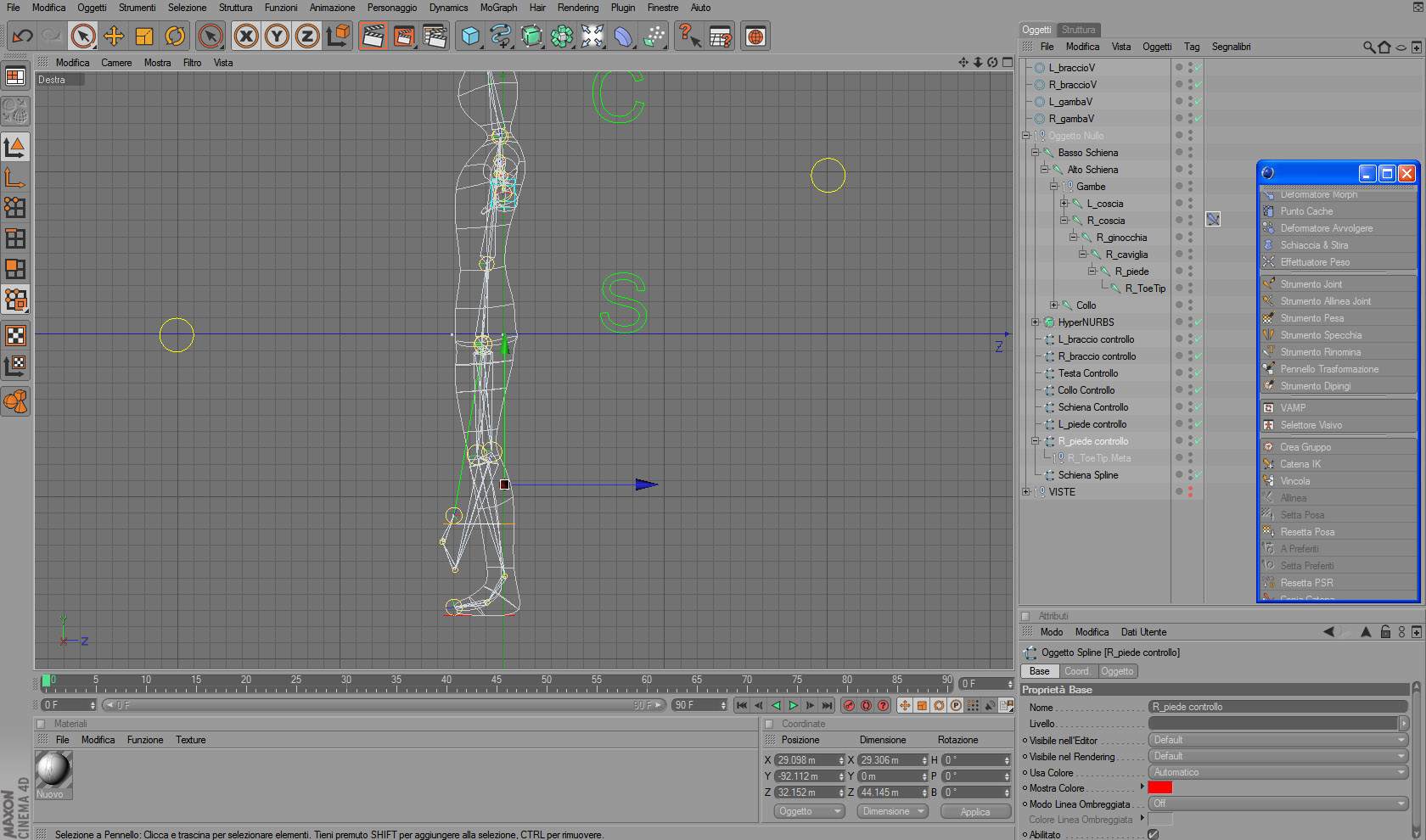 Inserisci tutti e 3 i controller dentro la spline di controllo che hai creato per il piede "R_Piede controllo".