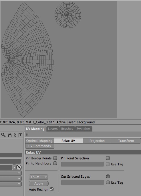 -da Relax UV attivo l'opzione Cut Selected Edges e clicco apply
