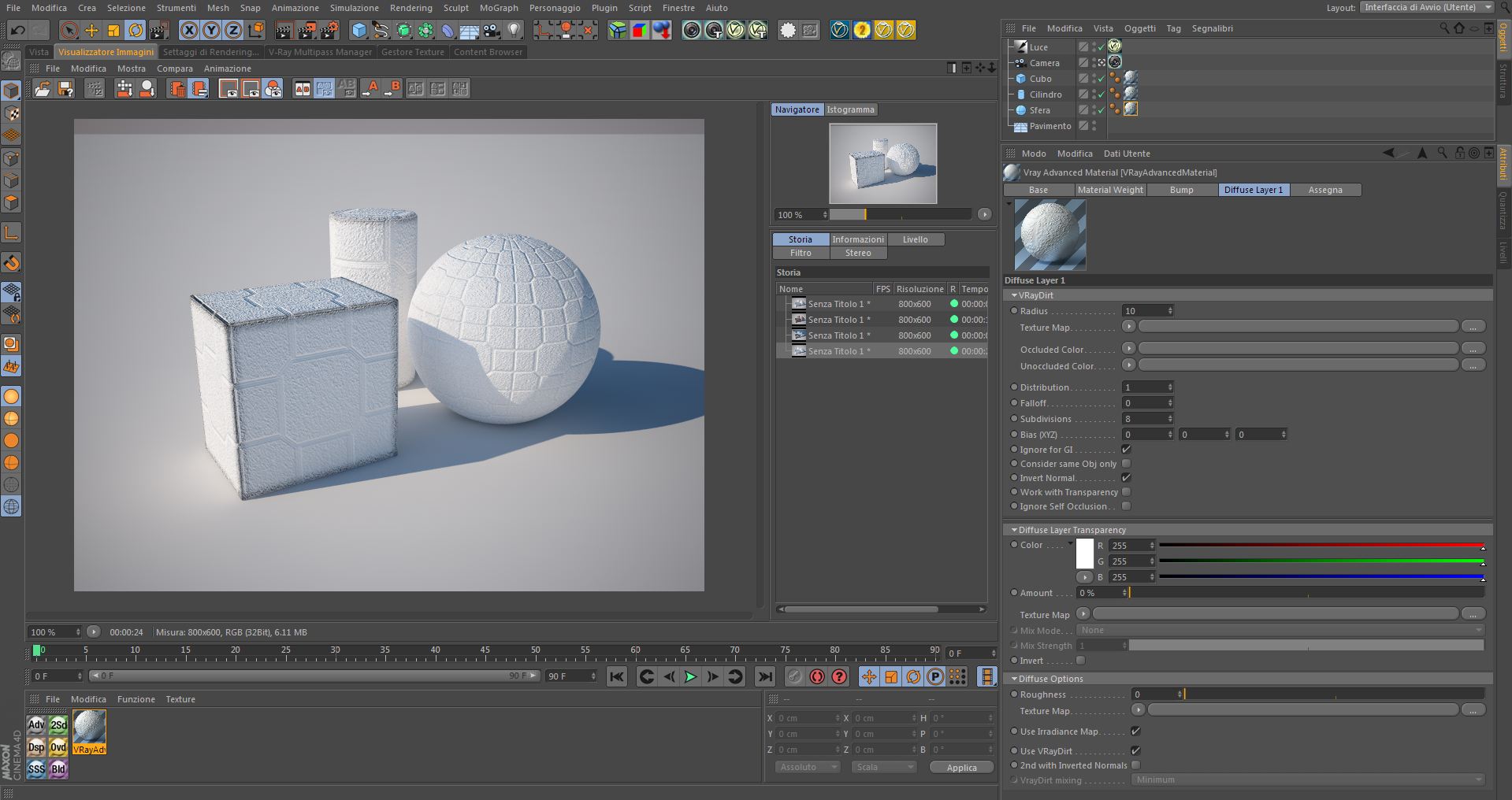 Pero ho fatto un test creando un materiale ed utilizzando un vrayshader blend. In pratica con questo shader si fondono due texture.