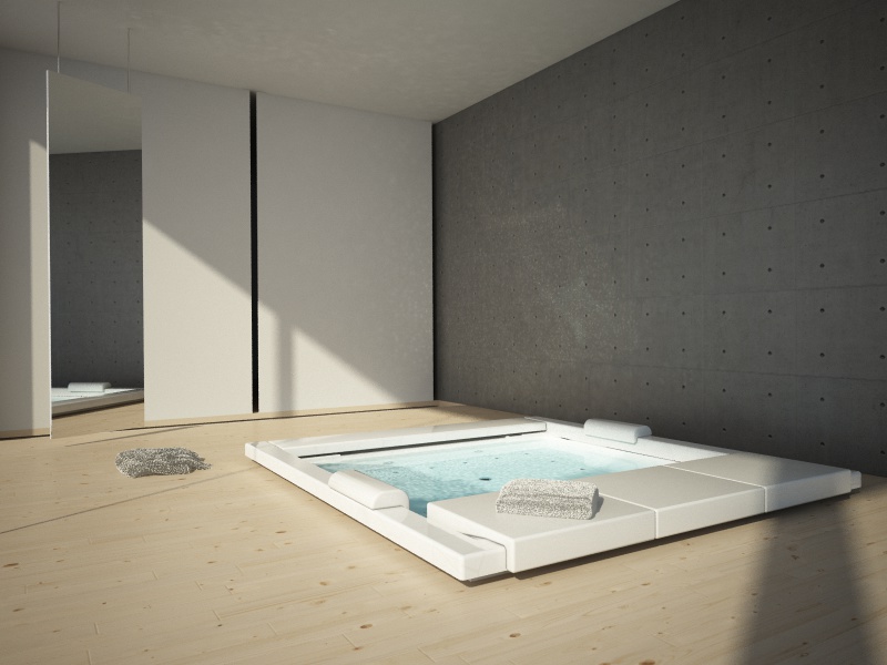 La vasca in realtà è rialzata, ma perché è così nella realtà.