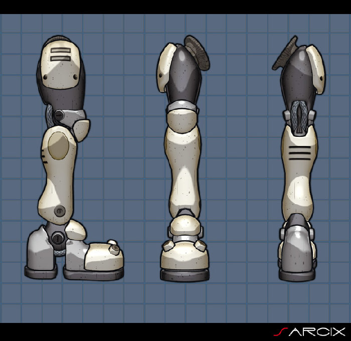 Non mi convincono molto le zeppe, forse qualcosa che agganci, qualcosa di più meccanico, o forse alla robocop, mi sembra che fosse un'intelligente compromesso tra meccanico e antropomorfo.