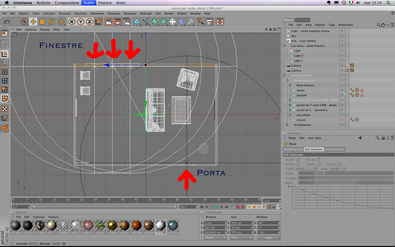 Nella scena ho inserito una luce infinita e nell'oggetto SKY ho lasciato attivato l'elemento Sun.