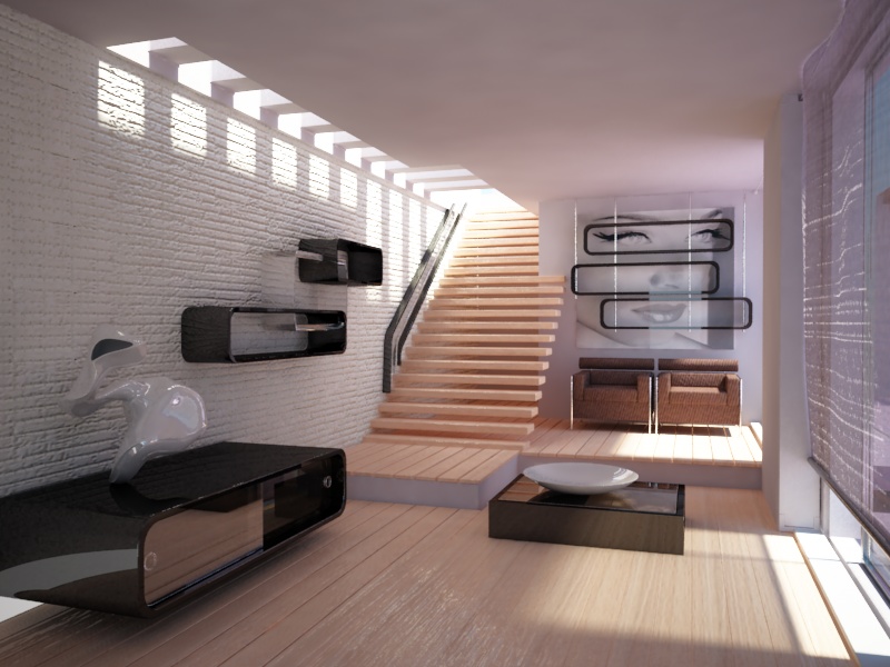 -i riflessi che si vedevano nel mobile in primo piano erano dovuti al fatto che alle ante di apertura avevo messo un materiale che in teoria doveva essere un vetro,e proprio lì andava a cozzare un pò di luce proveniente dal finestrone difronte!! nel render che ho inserito ora ,il mobile è monomaterico(poi in seguito risolverò anche quello di dilemma)!