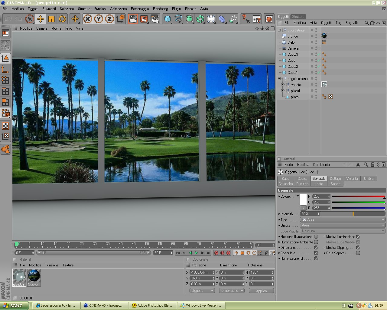 consiglio: quando inserisci le area spunta nei dettagli "solo direzione Z" assicurandoti che l'asse Z sia puntato verso l'interno del tuo ambiente, altrimenti se avessi qualcosa oltre la vetrata sarebbe inspiegabilmente illuminato dalle tue luci area