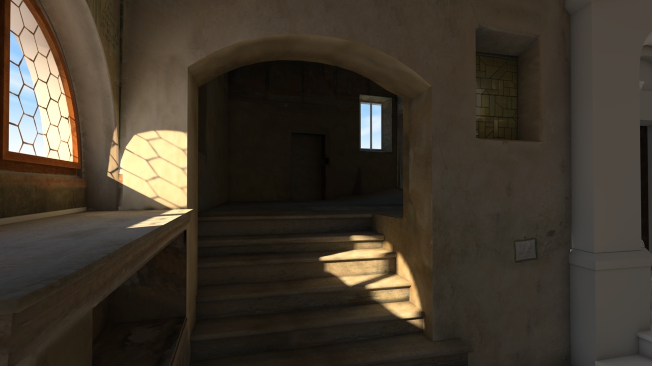 La parte dietro l'inferiata é ottenuta con un'immagine HDRI.