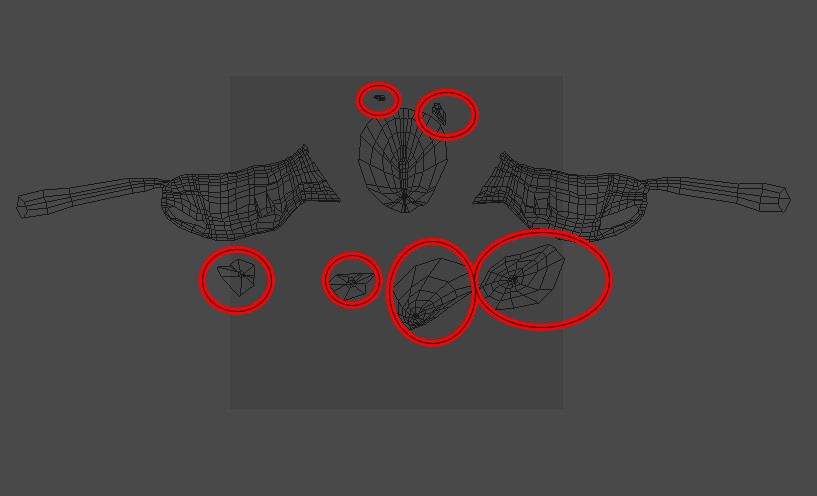 per cui per questi elementi ho effettuato anche delle selezioni di lati che mi dovrebbero consentire di srotolare le loro mesh in maniera più consona.