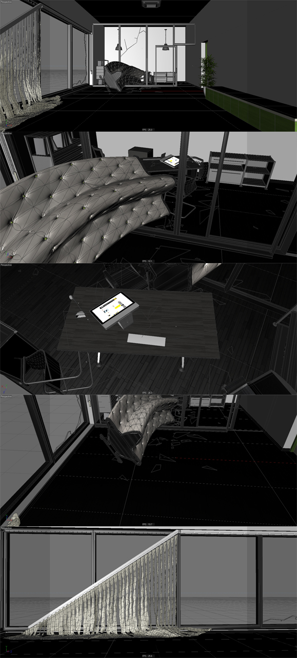 fatta la premessa vi mostro una terna di soluzioni [http://www.youtube.com/watch?v=yDG-i5Ig5FQ] a cui sono approdato per quanto riguarda la tenda, considerato che è comunque un'immagine statica, più che il sul dato tecnico/simulativo mi interessa di più il vostro parere "estetico" sulla configurazione più drammatica e/o efficace [in linea generale non le prenderei in considerazione prima del frame #300].